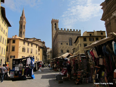 翡冷翠,除了藝術,絕不能忘了皮件。即使是品質較劣等的路邊小攤販也散發出瘋狂的嗅覺提醒:「義大利皮件,就在這裡。」我們經由行家的介紹,在一間只有翡冷翠才有的店鋪IRELI滿足了幾天來對於皮件的渴望,皮衣皮包到皮夾,那陣擋不住的皮香味令人瘋狂!據說皮件集散地最大宗的中央市場(Mercato Centrale)無緣一探究竟,只好期待下次來訪百花女神,更深入的感受翡冷翠的詩情畫意。